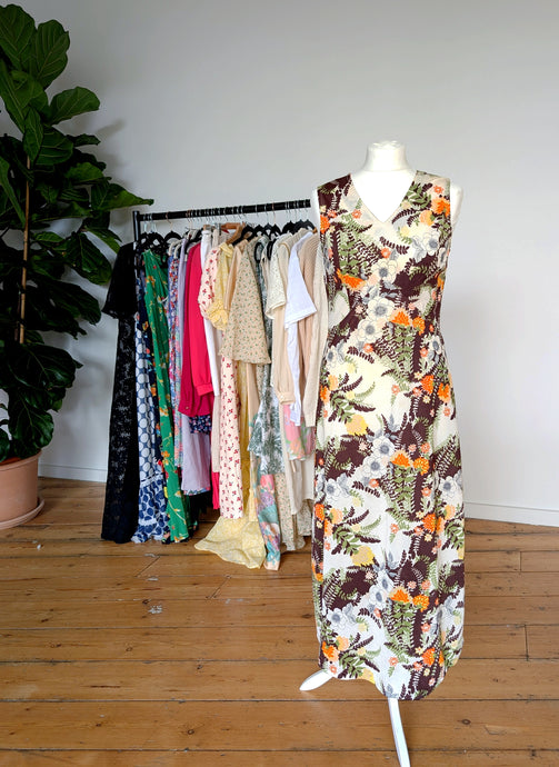 Orange Brown and Green Vintage Floral Dress. Size 10