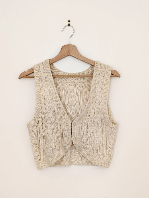 Cream Cable Knit Waistcoat With Pockets. Sleeveless Jumper. Size 16/18