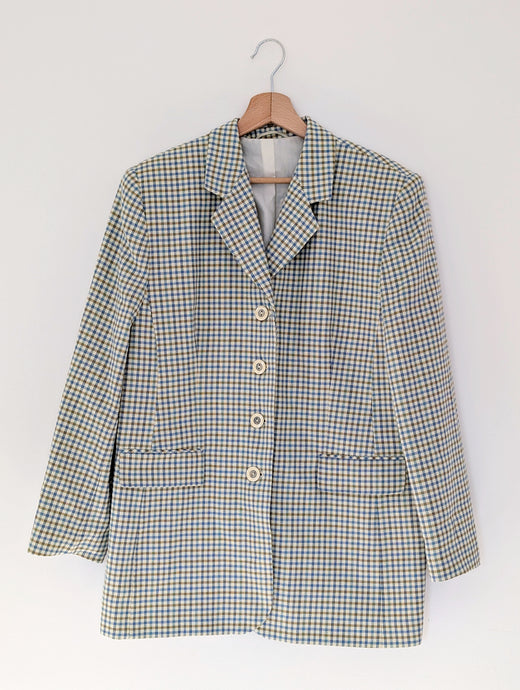 Vintage Green and Blue Checked Blazer Jacket. Size 16