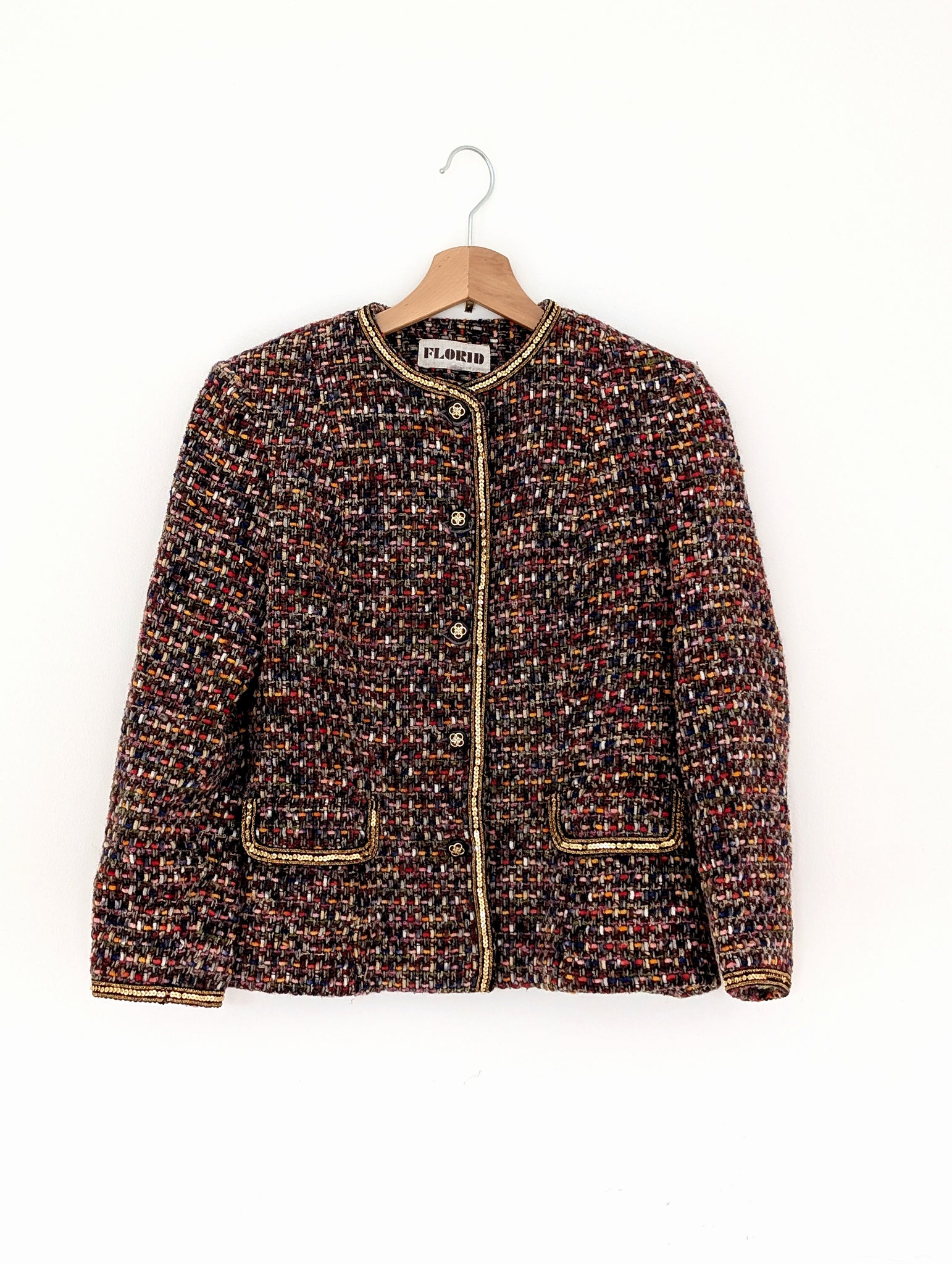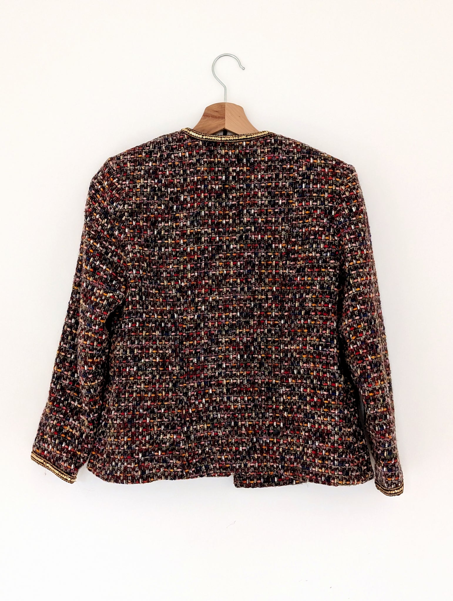 Multi Coloured Tweed Jacket with Sequins. Size 10