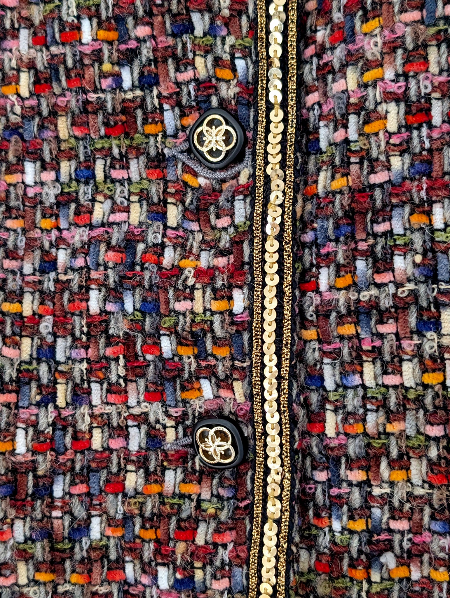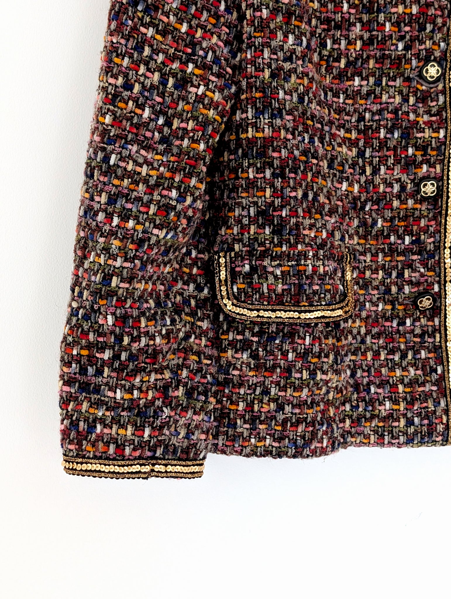 • Load image into Gallery viewer, Multi Coloured Tweed Jacket with Sequins. Size 10