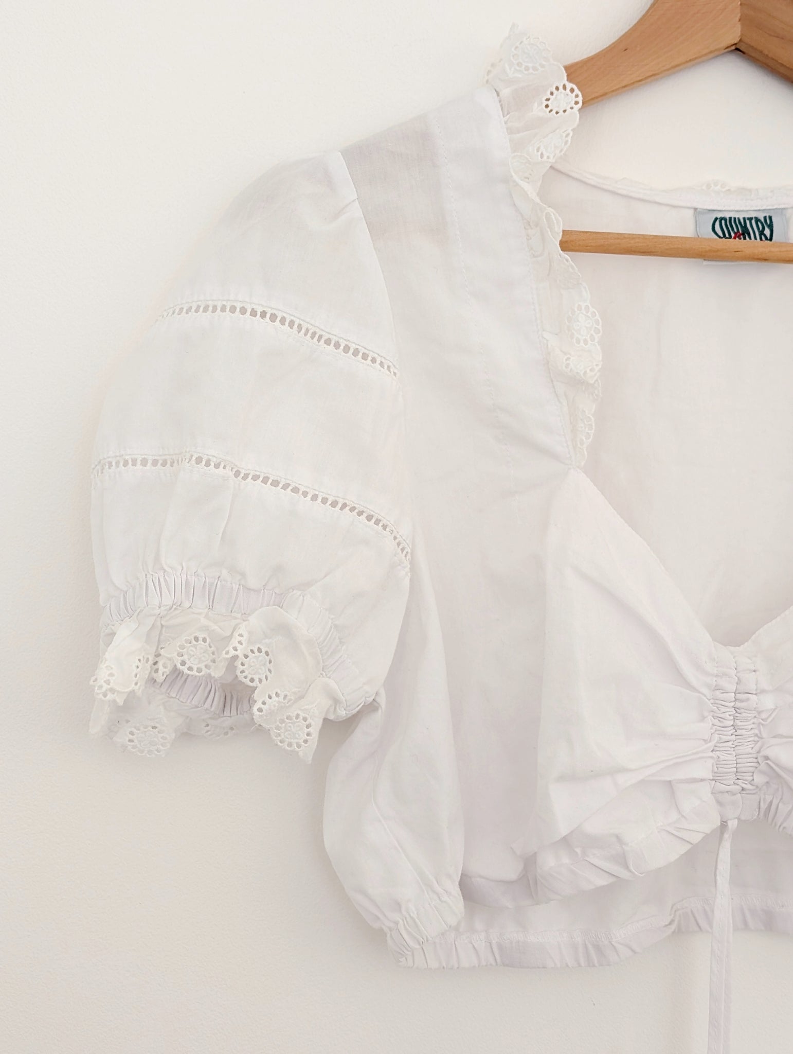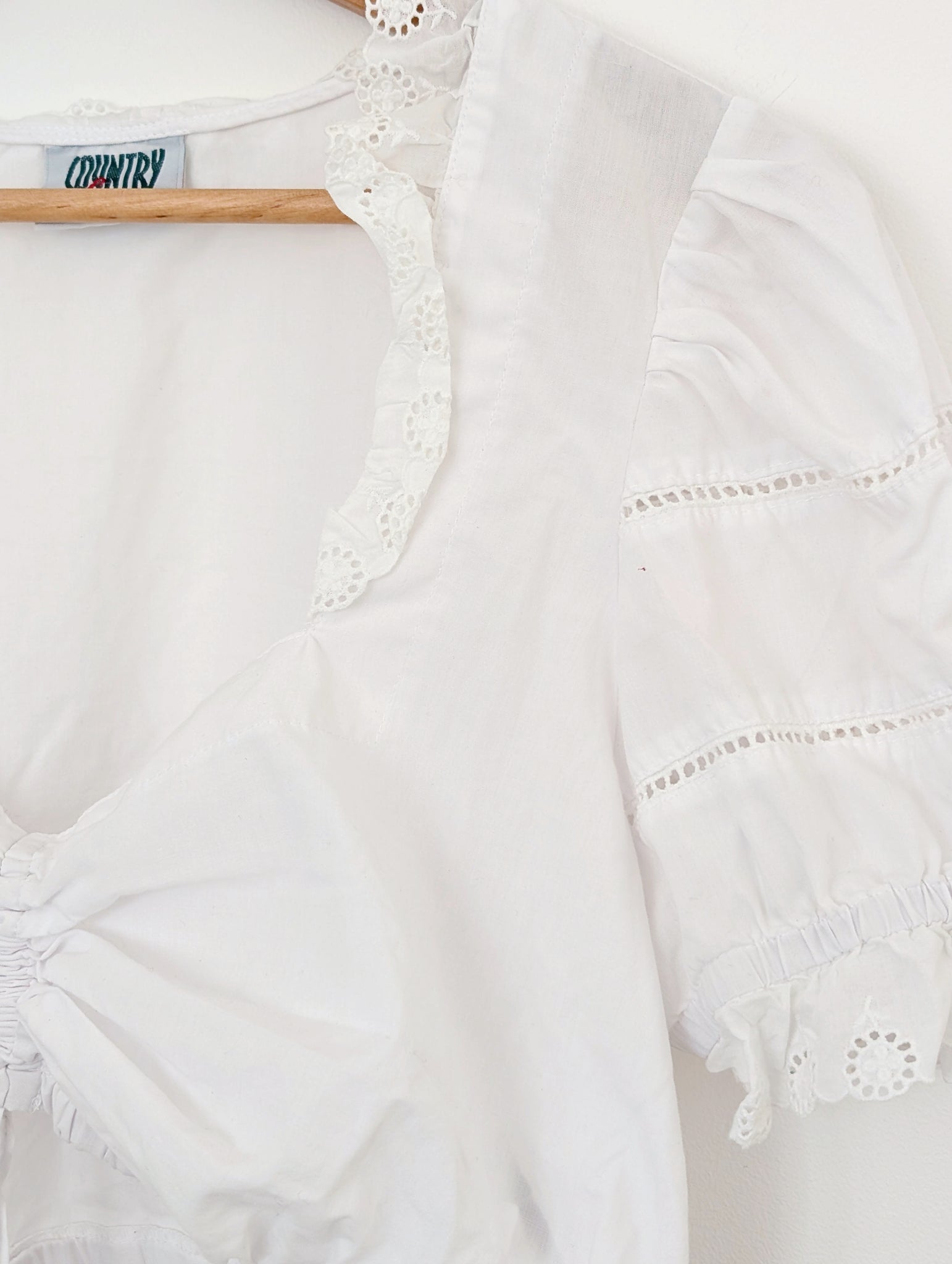 • Load image into Gallery viewer, White Cropped Cotton Blend Top. Size 12
