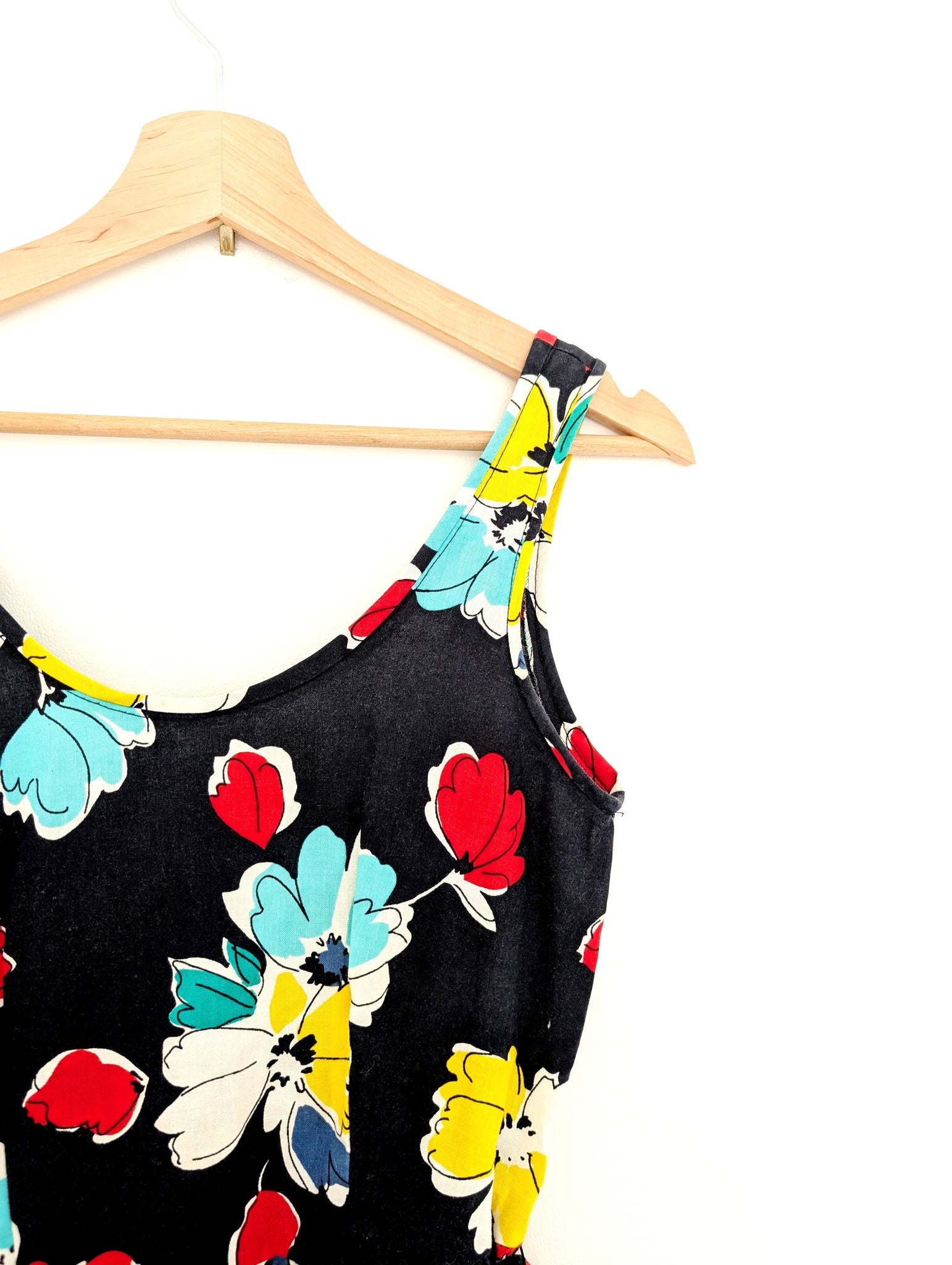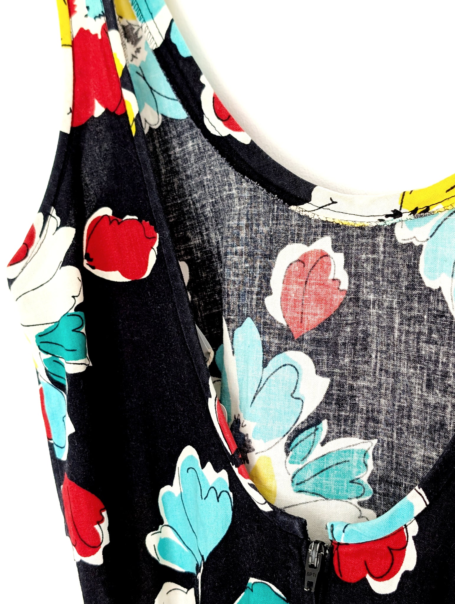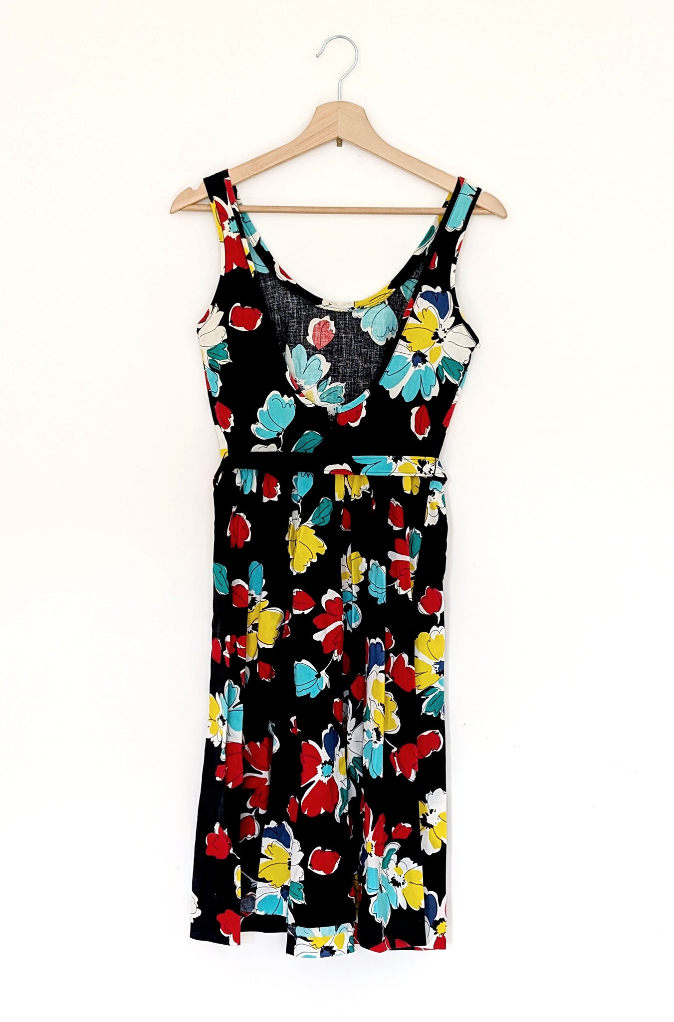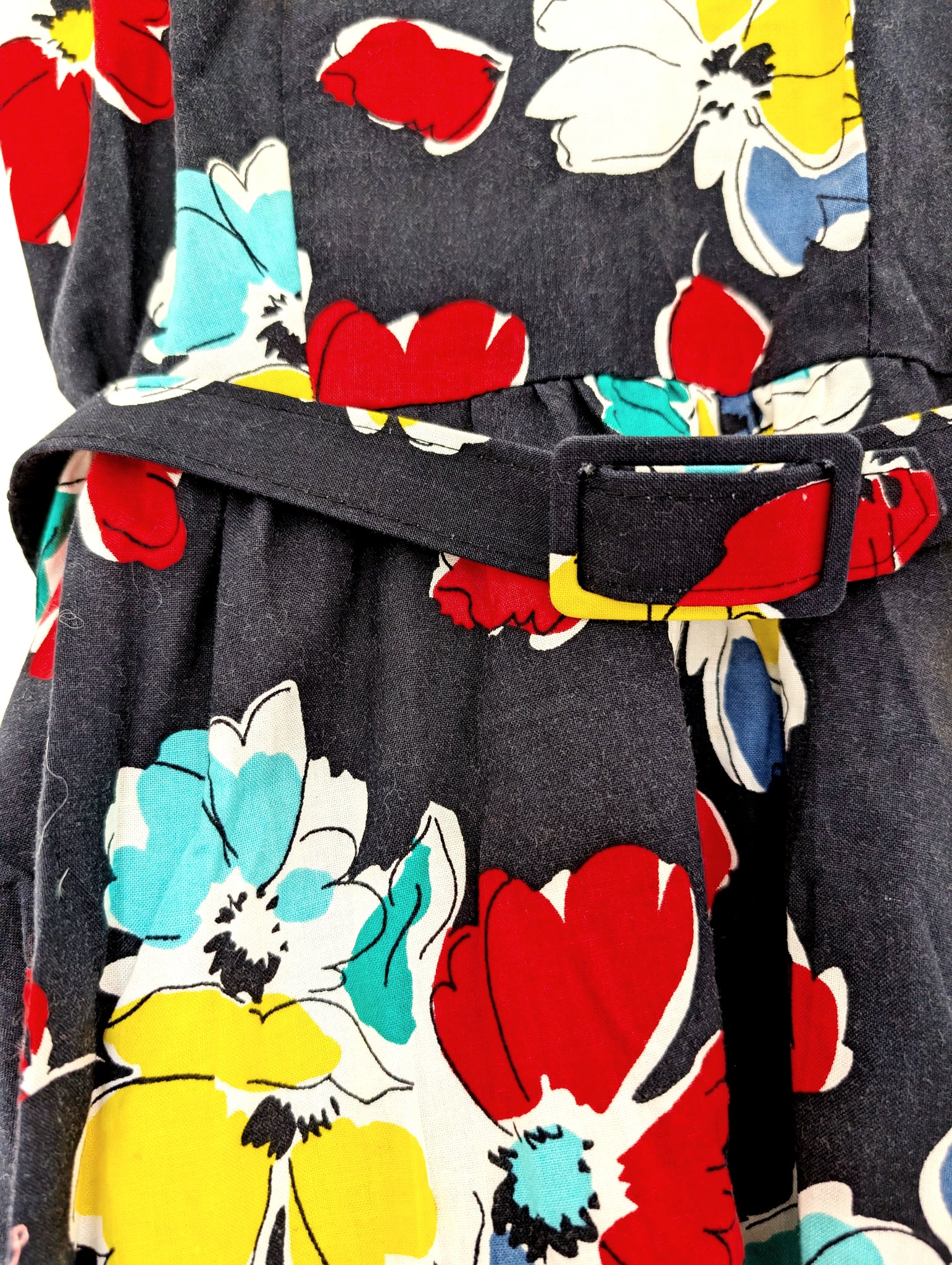 • Load image into Gallery viewer, Navy and Floral Cotton Dress with Belt. Size 8